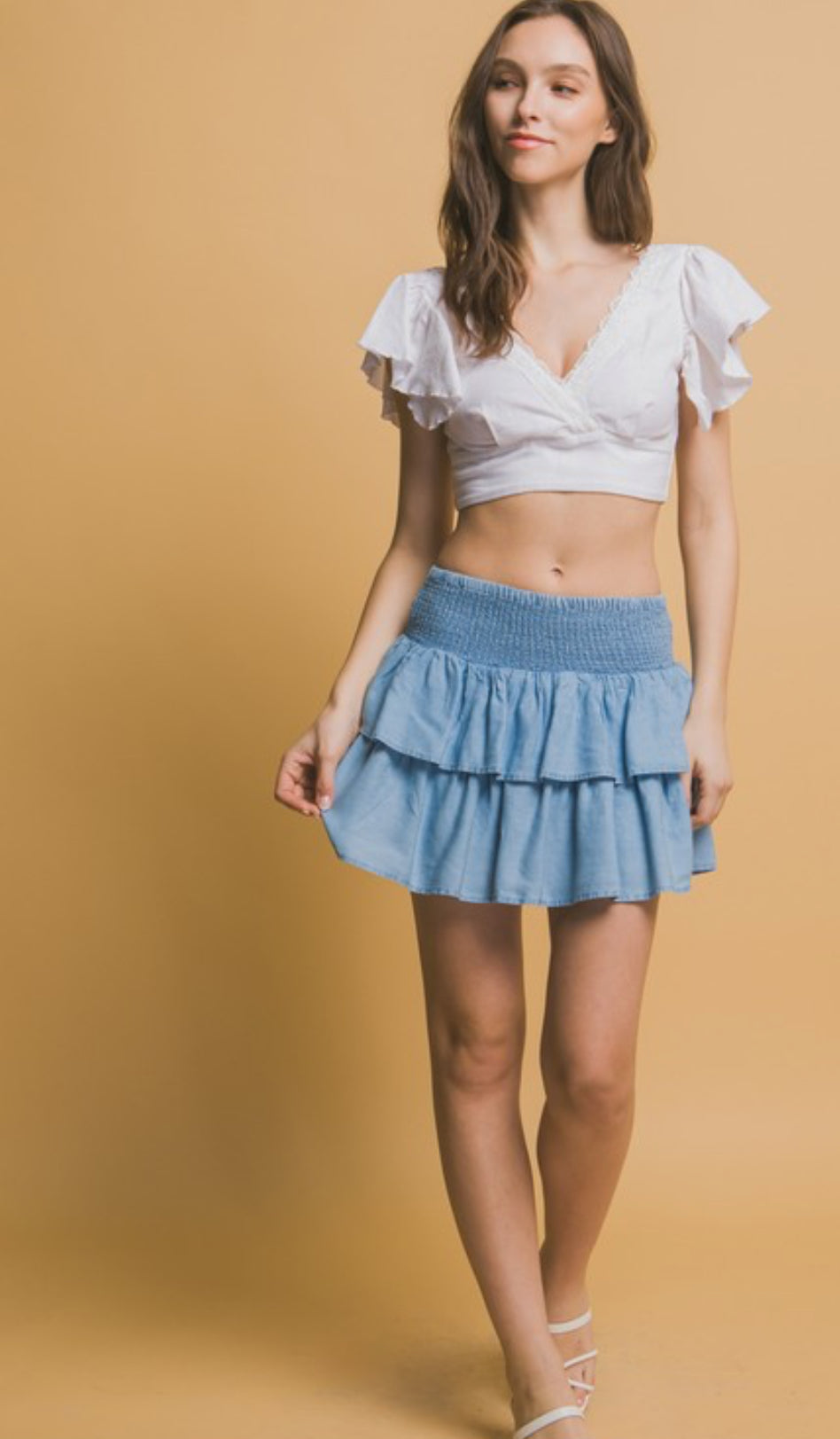 This shirred waist mini skirt will add some fun to your style. The lightweight fabric drapes beautifully and the elastic waist gives some stretch.